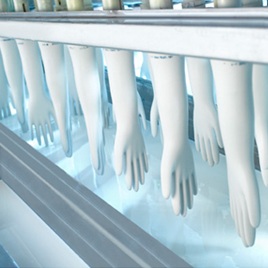 Calsperse CS-P25 is a Calcium Stearate based dispersion specially formulated for the special antitack properties that is required in latex glove manufacturing applications. It is easily miscible with water and no vigorous stirring is required to dilute to required percentage for use in the coagulant tank together with calcium nitrate for powder free gloves manufacture –especially for NR latex gloves production, while it also can be used in NBR gloves as former release agent.